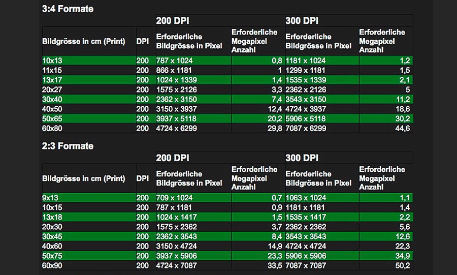 Immer wieder taucht die Frage auf, wie groß ein Bild sein muß, um für eine bestimmte Größe von Abzügen groß genug zu sein. Im „Focus“ war darüber ein Artikel und eine Tabelle zur Antwort auf dieses Thema. Hier der Link: http://www.focus.de/digital/foto/bildaufloesung/uebersichts-tabelle_aid_9929.html