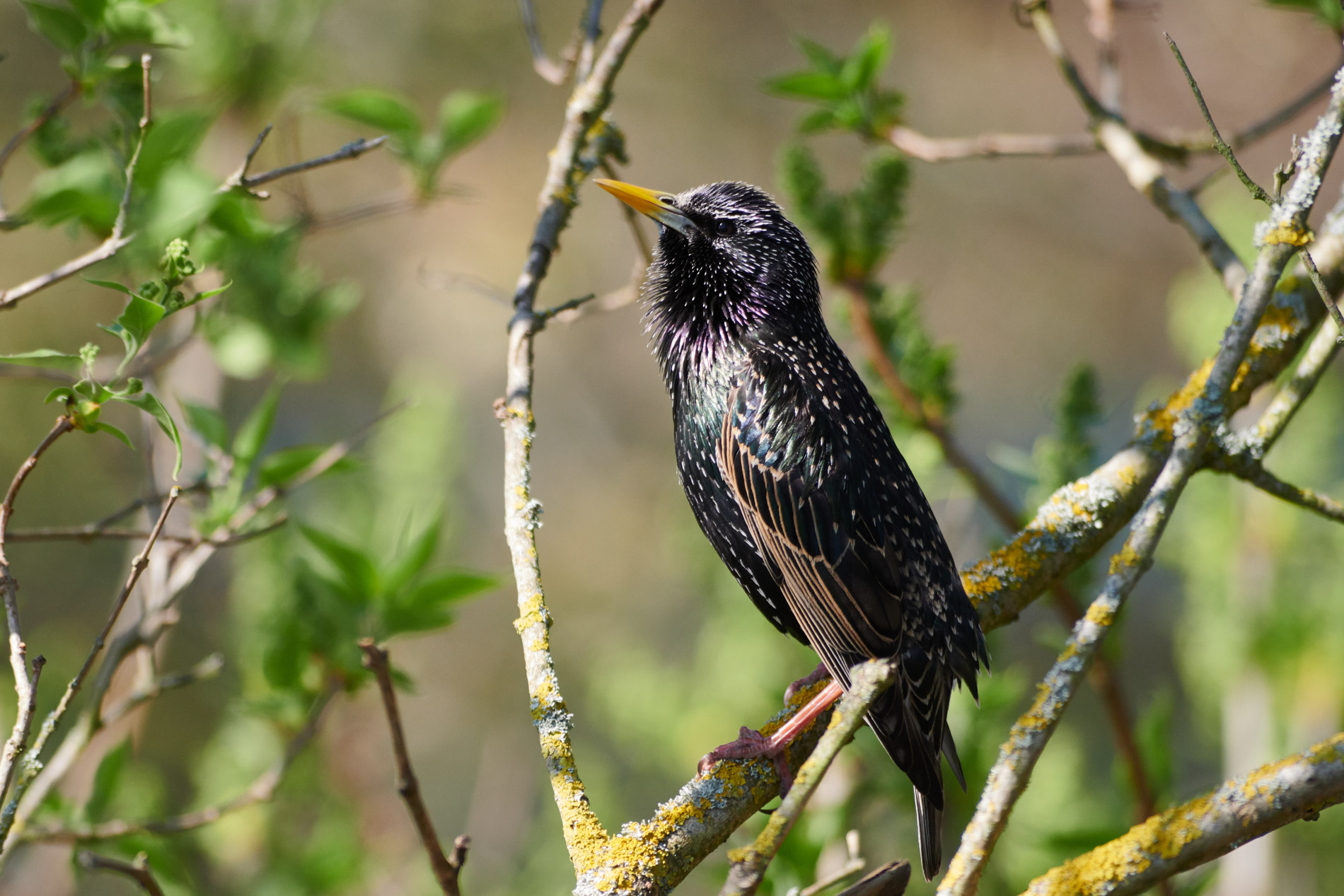 Ich finde die Vögel schon immer große Klasse, erst bei näherer Betrachtung und beim richtigen Licht kommt ihr bläulich-schwarz und eigentlich buntes Gefieder richtig zur Geltung. Weil sie normalerweise sehr schnell unterwegs sind und etwas kleiner noch als Amseln, hat man selten Gelegenheit zur „näheren Betrachtung.“ Also Fotografieren!