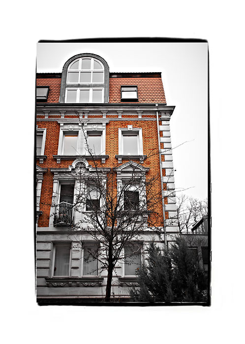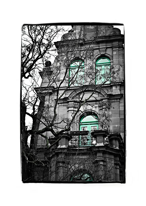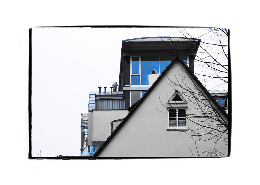Sandstein, Backstein, Glas und Stahl – Kontraste in Johannis, ein Schwarz-Weiss-Thema