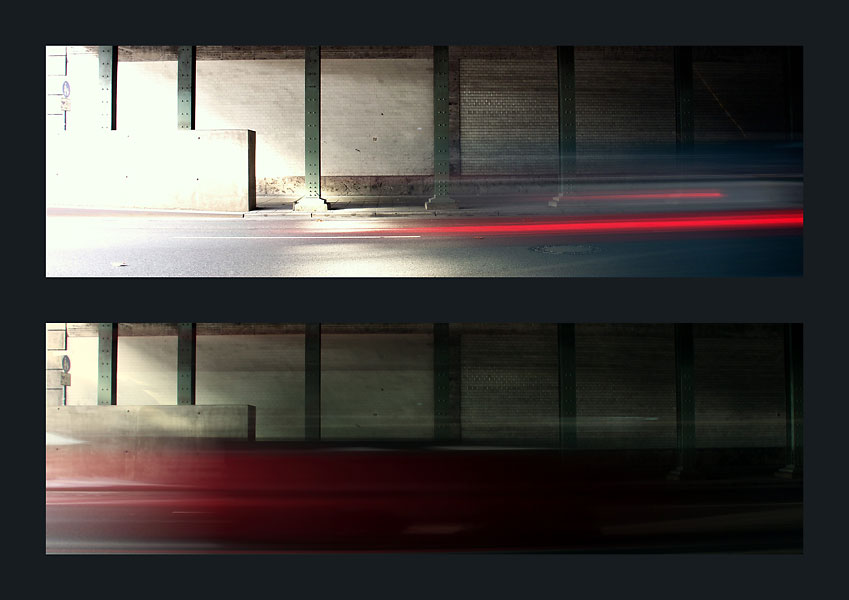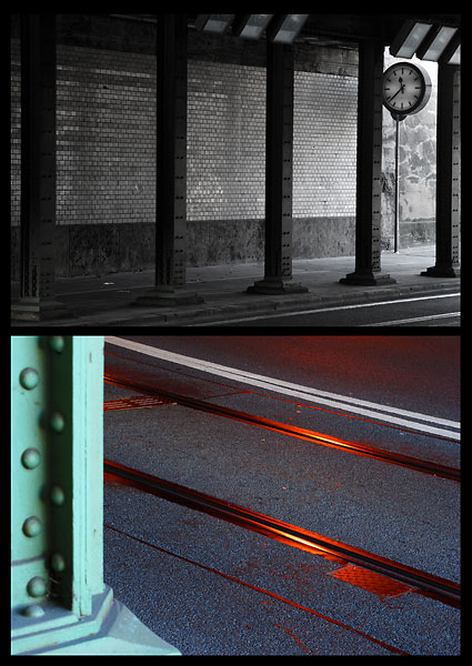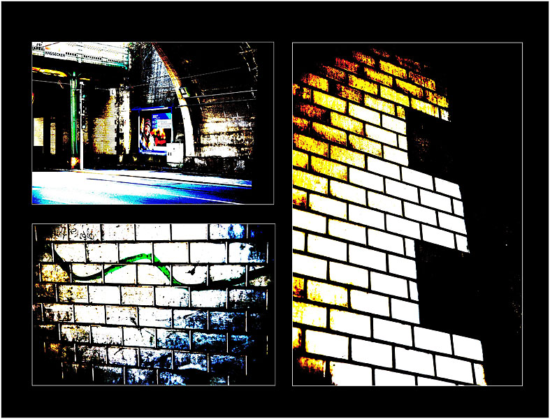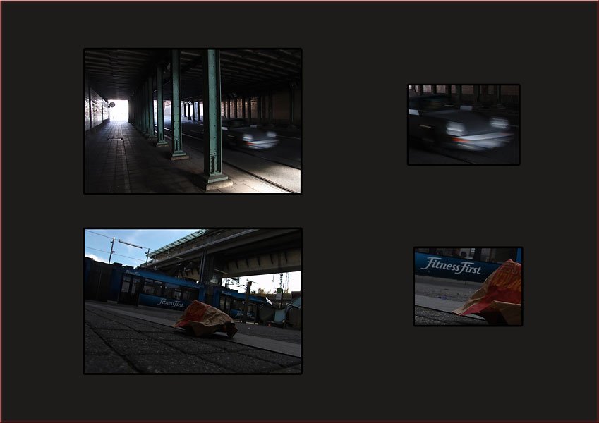 Auch hier hielten die dabei entstehenden Fotografien einige Überraschungen bereit.  Neues Equipment (LensBaby von Brigitte), interessante Perspektiven (Brynia) und etwas völlig unerwartetes (Corina) lieferten prima Resultate und neue Impressionen dieser nicht sehr attraktiven Stelle Nürnbergs. Alternative Techniken in der Fotografie und Präsentation – angewendet von Ahmet und Carolin – stehen dem „Saubermann“ Christian entgegen, der es auch an dieser schon fast verwahrlosten Kulisse schafft, saubere, kühle Fotografien entstehen zu lassen. Manche schafften es auch, ihren Bilder einen sozialkritischen Aspekt zu verleihen (Sarah, Corina).