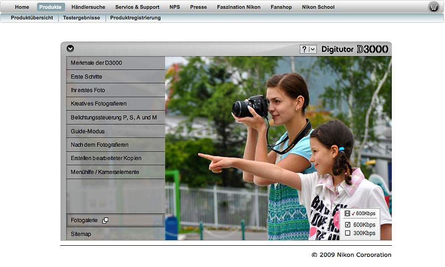 Auf speziellen Seiten – sozusagen einer Website in der Website – wird erklärt, wie man Kameraeinstellungen durchführt und wozu sie in der Praxis gut sind. Dabei helfen Filme mit optische Hervorhebungen, die die Vorgehensweise erläutern und Videos zum Einsatz in der Praxis.
